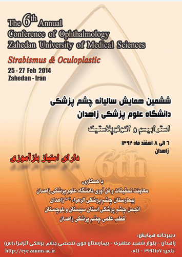 زمان و مکان برگزاری: ۶ الی ۸ اسفند ۱۳۹۲ – دانشگاه علوم پزشکی زاهدان، بیمارستان چشم پزشکی الزهرا